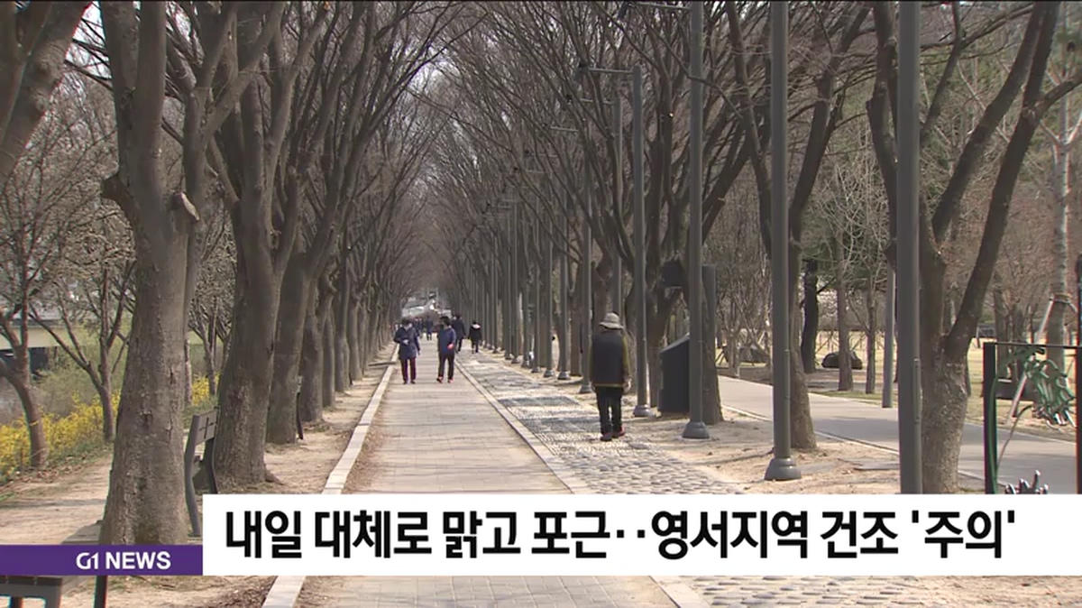 내일 대체로 맑고 포근.. 영서지역 건조 '주의'