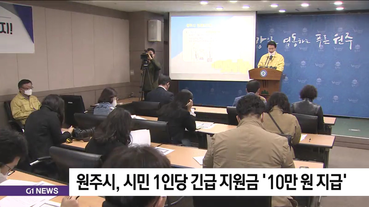 원창묵 원주시장은 오늘 정례브리핑을 열고 지역경제 활성화를 위한 긴급 지원금으로 시민 1인당 10만원씩을 지급한다고 밝혔습니다.