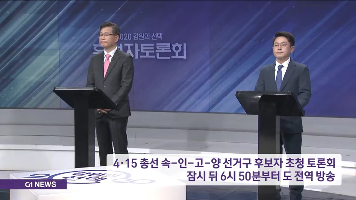 G1 강원민방과 강원도민일보가 공동으로 마련한 4·15 총선 후보자 토론회의 여섯번째 순서로, 속초-인제-고성-양양 선거구 토론회가 잠시 뒤 오후 6시 50분부터 한 시간동안 방송됩니다.