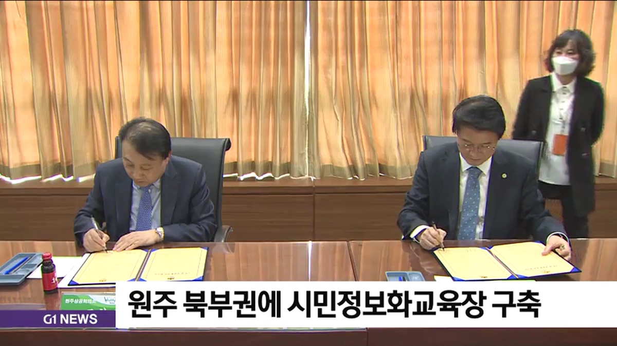 원주시와 원주상공회의소는 오늘 원주시청 투자상담실에서 북부권 시민 정보화교육장 구축과 운영에 관한 업무협약을 체결했습니다.