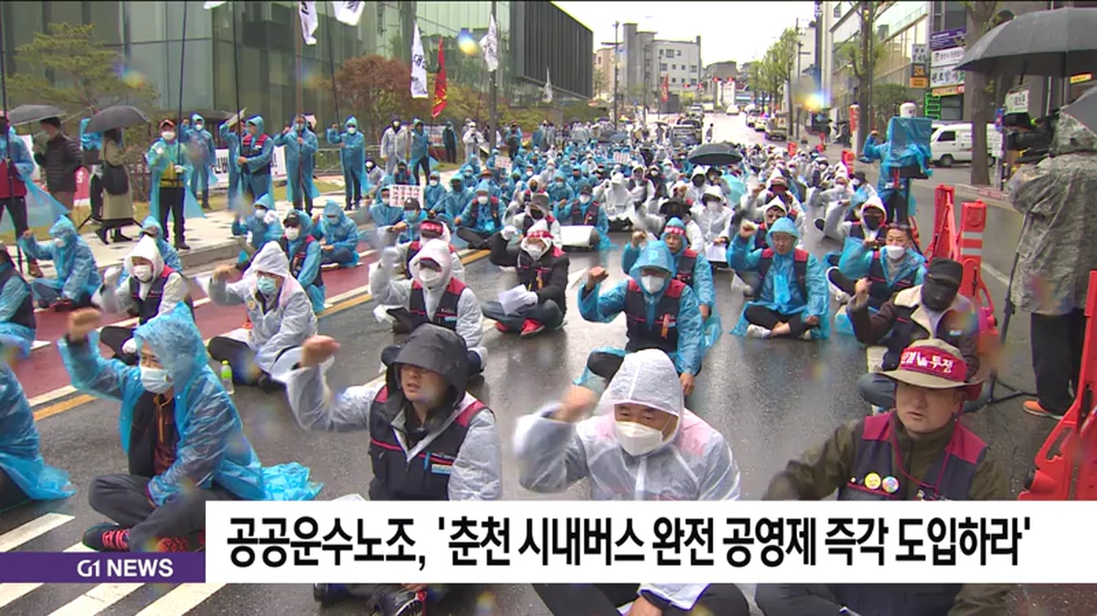 전국공공운수노조 강원지역본부는 오늘 춘천시청 앞에서 춘천 시내버스 완전 공영제 즉각 도입을 촉구하는 대규모 결의대회를 열었습니다.