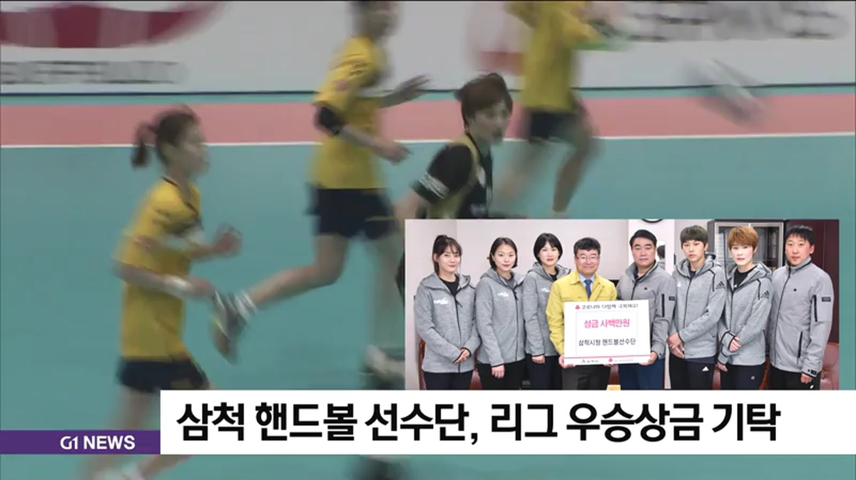 삼척시청 핸드볼팀 선수단이 코로나19 극복을 위해 올해 핸드볼 리그 우승상금 4백만 원을 삼척시청에 기탁했습니다.