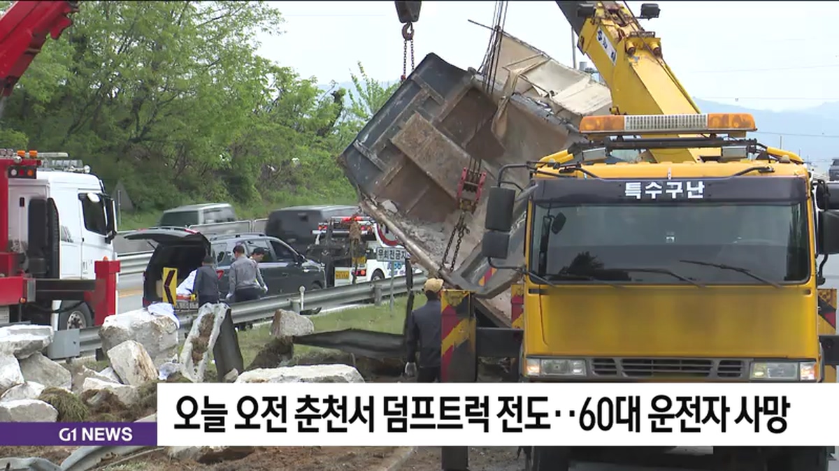 오늘 오전 춘천서 덤프트럭 전도..60대 운전자 사망