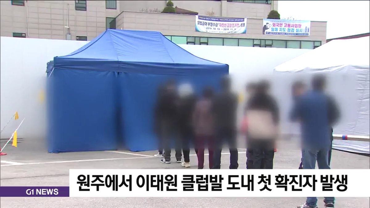 원주시에 따르면, 태장동에 사는 18살 대학생 A군이 지난 5일 이태원의 한 클럽에 다녀온 뒤 의심 증상을 보여 어제 원주시 선별진료소에서 검체를 채취한 결과 확진 판정을 받았습니다.