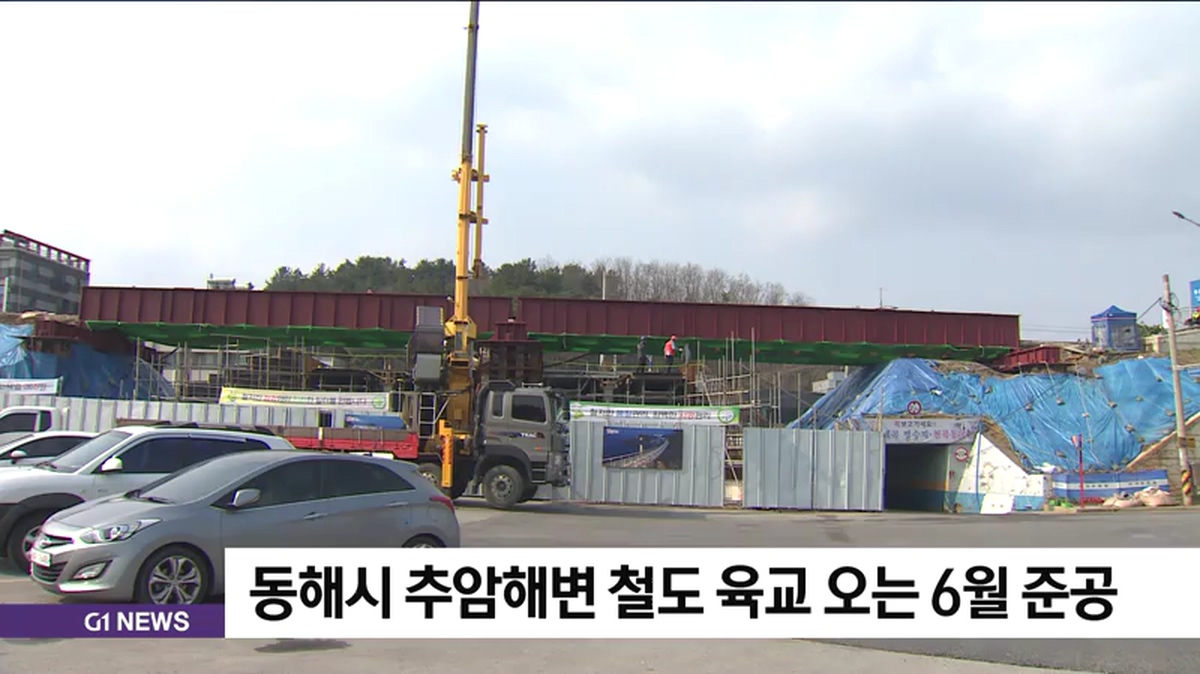 동해시는 지난해 6월 첫 삽을 뜬 추암해변 철도 육교 확장공사가 85%의 공정률을 보여 오는 6월 예정대로 준공된다고 밝혔습니다.