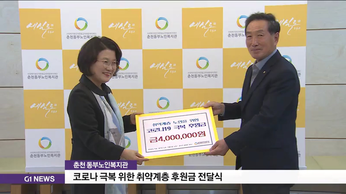 코로나 사태로 어려움을 겪고 있는 취약계층을 돕기 위한 후원금 전달식이 오늘 춘천 동부노인복지관에서 열렸습니다.