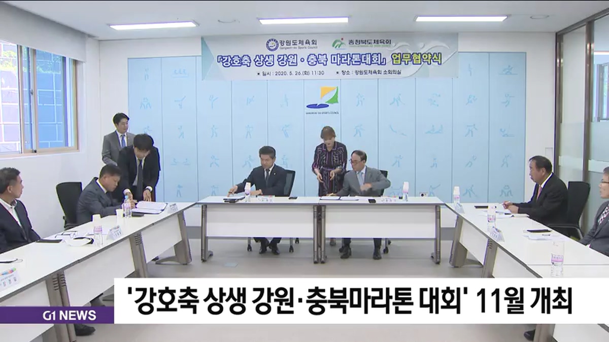 강원도 체육회와 충청북도 체육회는 오늘(26일) 강원체육회관에서 '강호축 상생 강원·충북 마라톤대회 업무협약식'을 갖고, 오는 11월 셋째주에 강원도를 출발해 충청북도에 도착하는 사흘 일정의 이어달리기식 마라톤 대회를 열기로 합의했습니다.