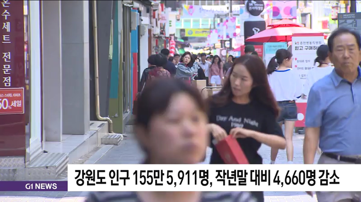 지난달 말 기준 내·외국인을 포함한 강원도 인구는 지난해 말에 비해 4천 660명이 줄어든 155만 5천 911명으로 조사됐습니다.