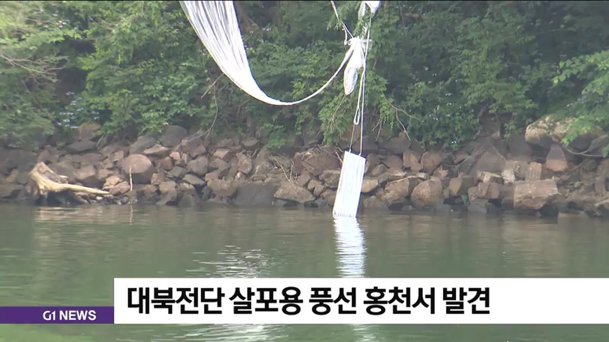 오늘 오전 10시쯤 홍천군 서면 마곡리 홍천강변에서 대북 전단으로 추정되는 대형 비닐풍선이 발견됐습니다.