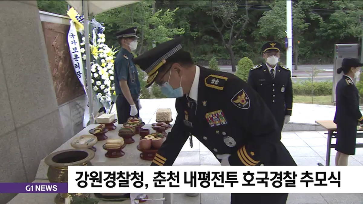 김재규 청장을 비롯한 강원경찰청 직원과 경찰 유족들은 오늘 춘천 내평전투 호국경찰 추모상을 찾아 한국전쟁 당시 조국을 지키다 순국한 경찰의 넋을 기렸습니다.