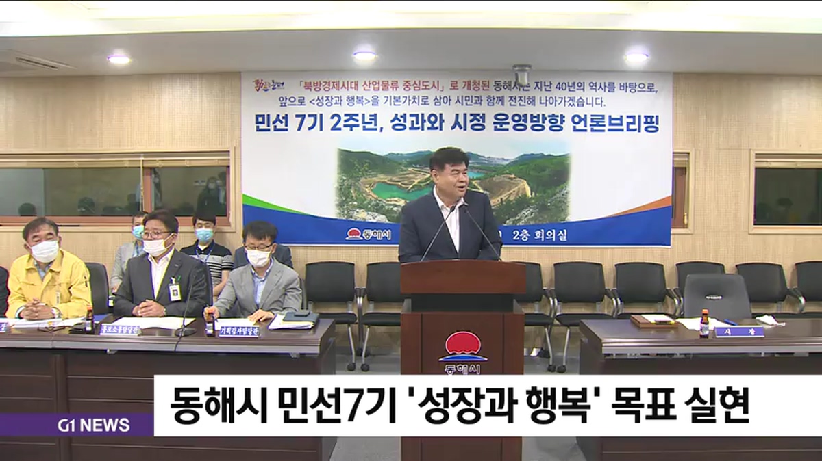 심규언 동해시장이 민선 7기 취임 2주년을 맞아 기자회견을 열고, 남은 2년을 일자리와 소득 창출로 시민 모두가 행복한 동해시를 만드는데 최선을 다하겠다고 밝혔습니다.