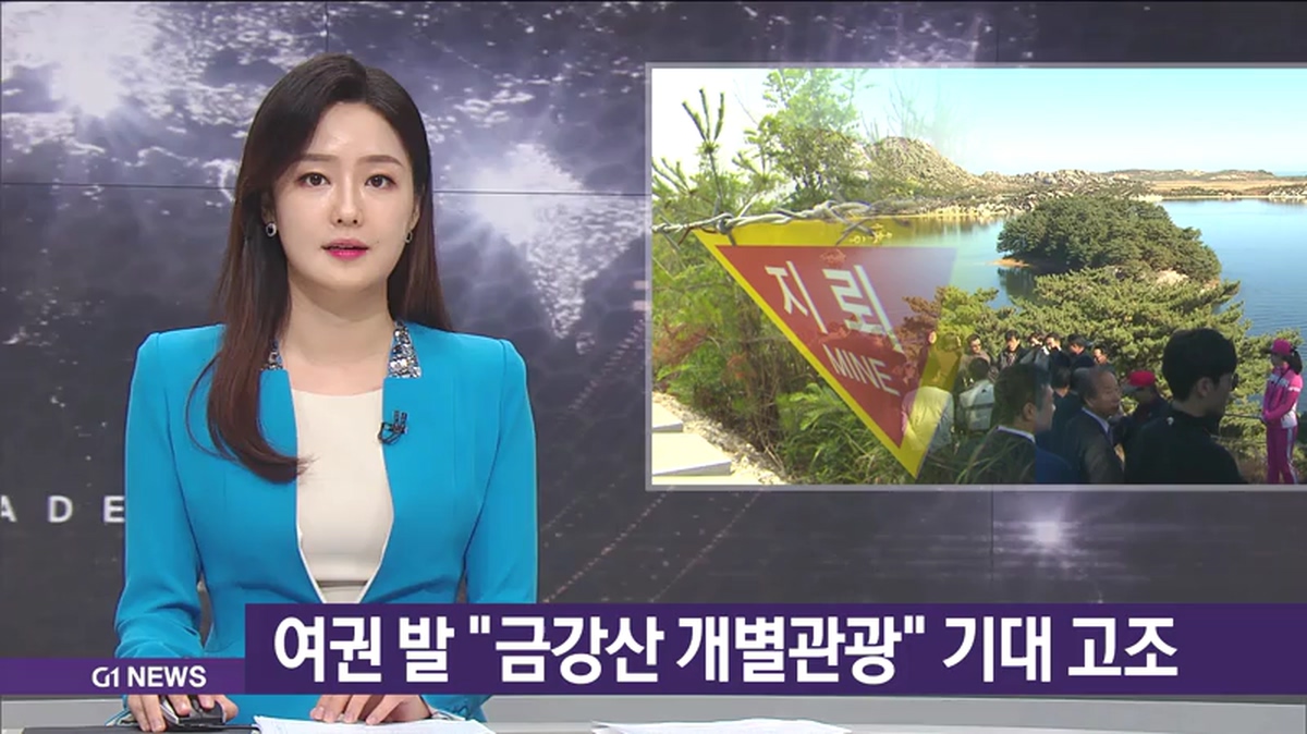 "정치권의 금강산 개별 관광 논의가 멈춰선 남북협력의 시계 바늘을 다시 돌릴 수 있을지 기대감이 커지고 있습니다. G1뉴스 원석진입니다."