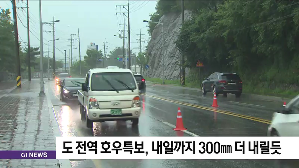 도 전역 호우특보, 내일까지 300mm 더 내릴듯