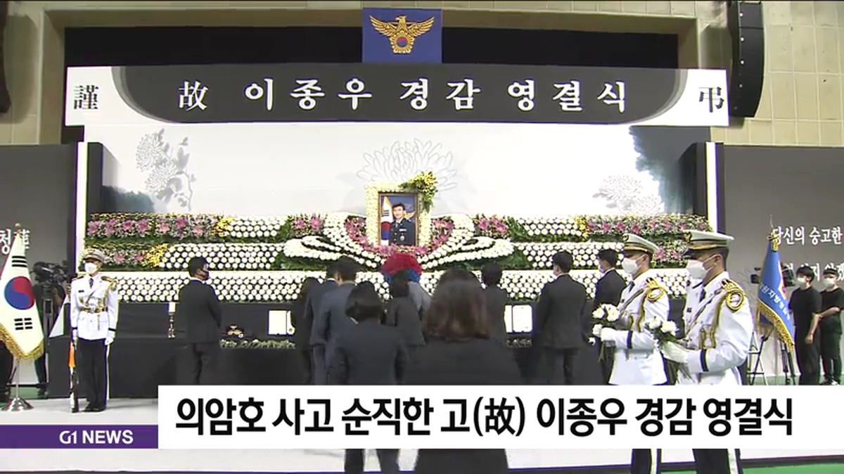춘천 의암호 선박 전복 사고로 순직한 고(故) 이종우 경감의 영결식이 오늘 유족과 경찰 가족 등 300여 명이 참석한 가운데 춘천 호반체육관에서 강원경찰청장(葬)으로 엄수됐습니다.