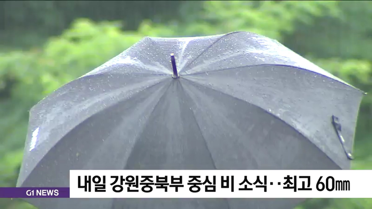 춘천과 홍천, 속초 등 강원 중북부 지역에 비가 집중되겠고, 강수량은 10mm에서 60mm 정도로 예상됩니다.