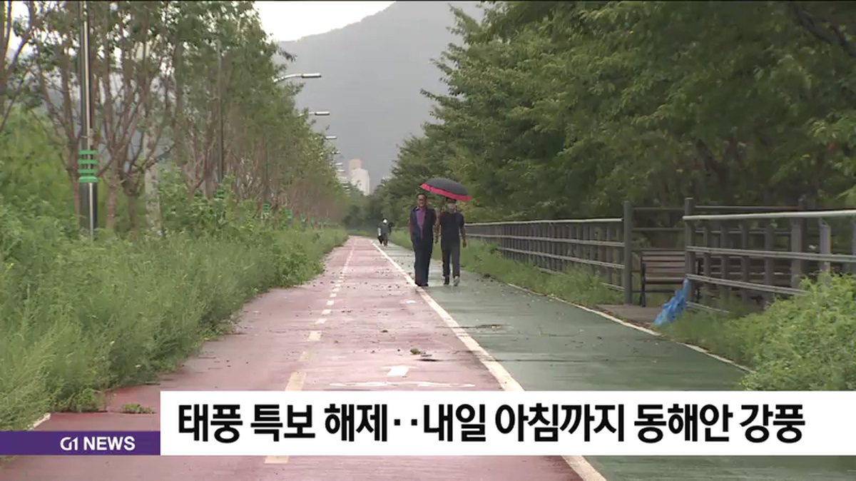 도내 태풍 특보는 모두 해제됐지만, 동해안 6개 시.군에는 내일 아침까지 강풍주의보가 유지되겠습니다.