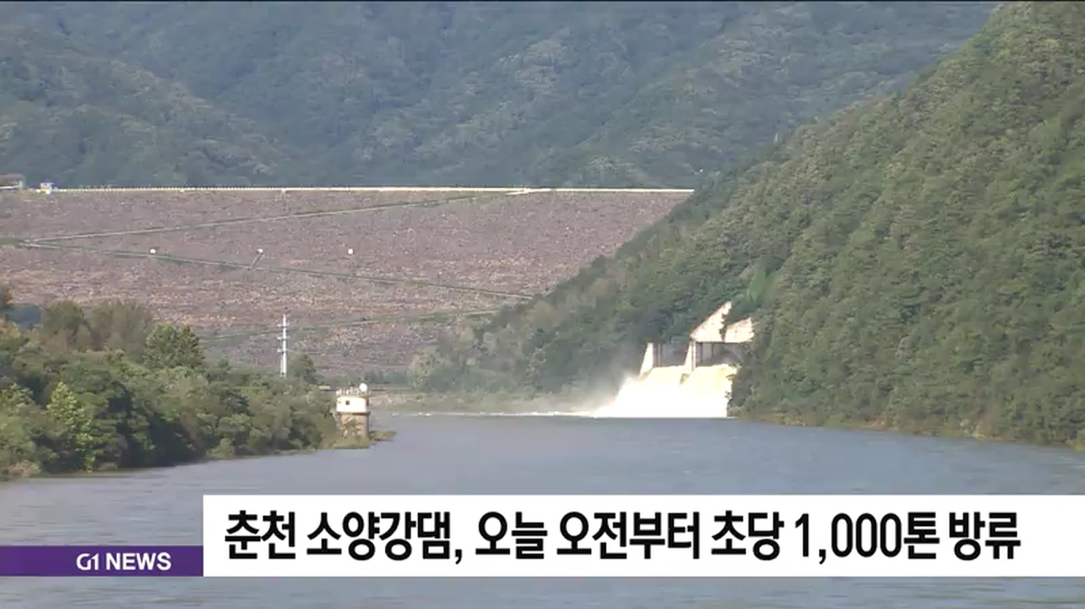 한국수자원공사 소양강댐지사는 안정적인 수위조절을 위해, 오늘 오전 9시부터 일주일 동안 여수로를 통해 초당 천 톤씩 물을 방류한다고 밝혔습니다.