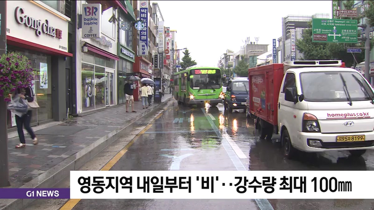 영동지역 내일부터 '비'..강수량 최대 100mm