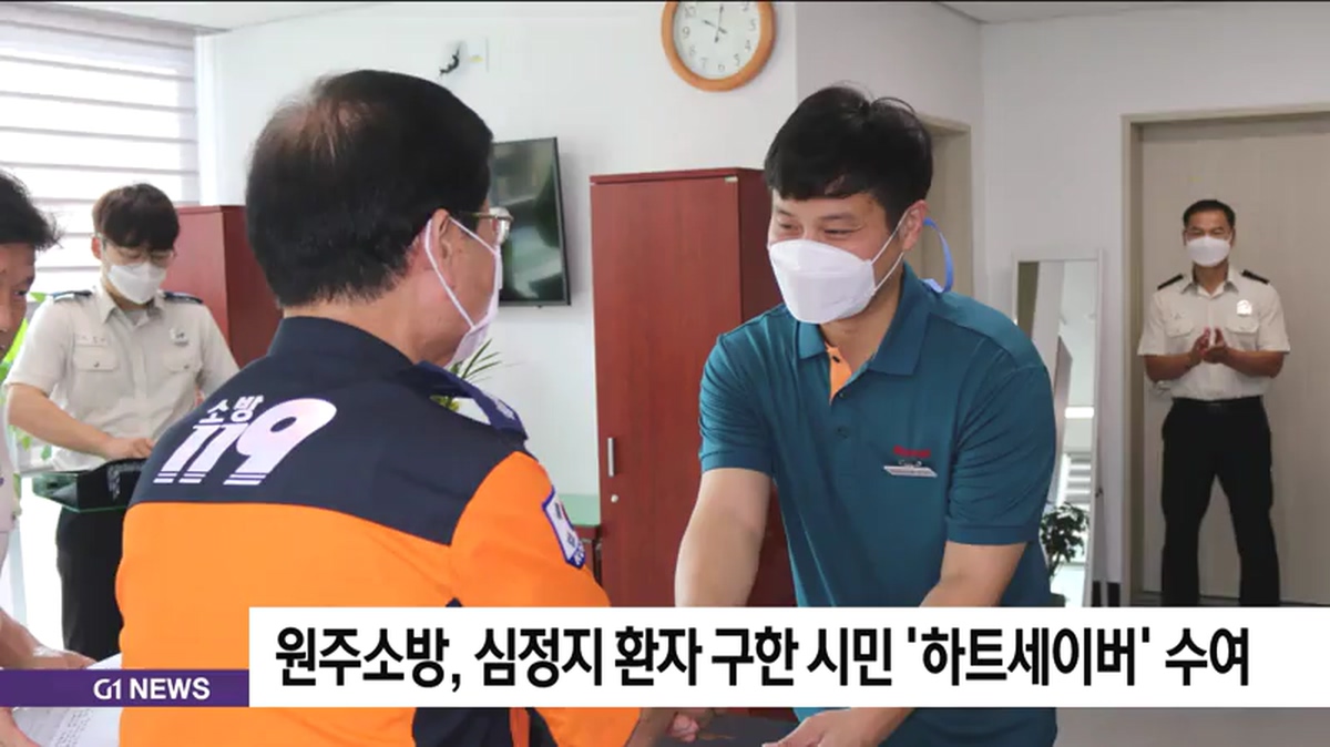 원주소방서는 세차장에서 갑자기 쓰러진 50대 남성에게 심폐소생술을 실시해 구한 김근수 씨에게 '하트세이버' 인증서를 수여했습니다.
