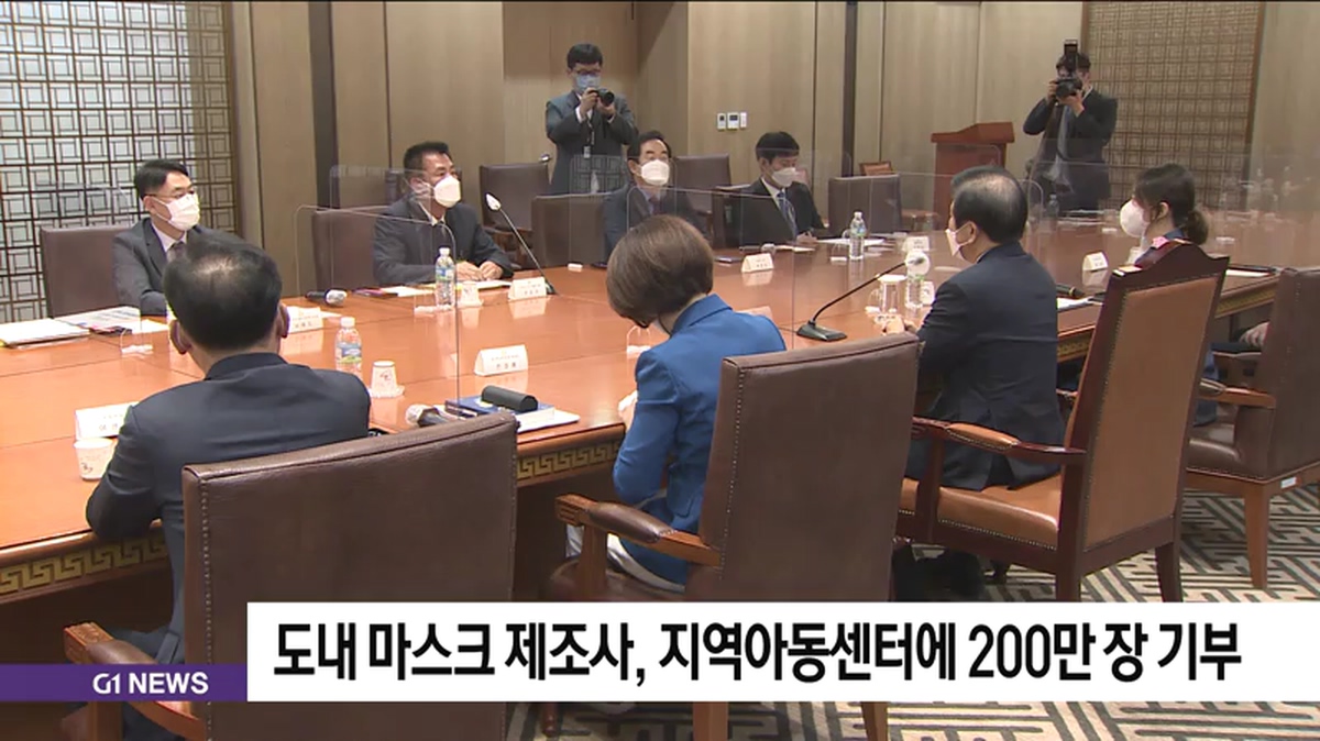 강원도 양구군 소재 마스크 제조사인 '온누리 플랜'은 오늘, 국회의장실에서 박병석 국회의장을 비롯해 이광재, 고민정 의원, 강원일보 박진오 사장 등이 참석한 가운데, 전국지역아동센터협의회에 마스크 200만 장을 기부했습니다.