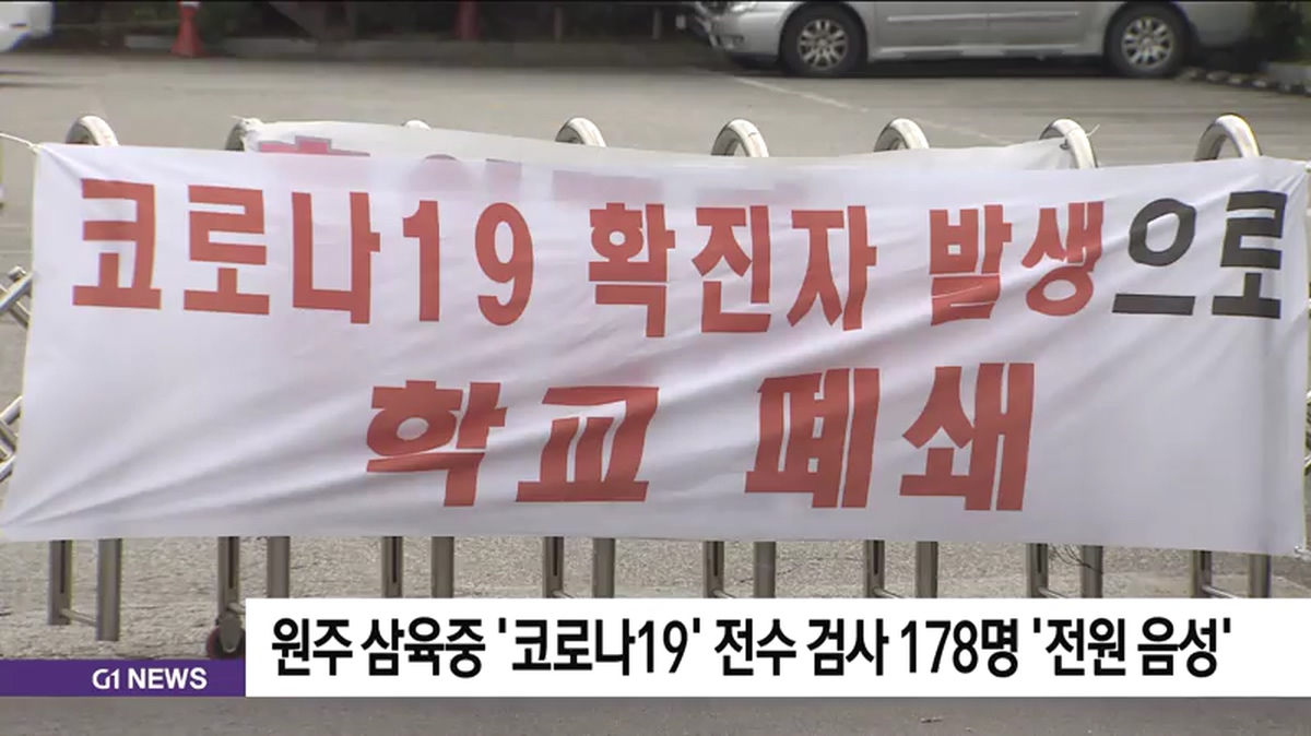 원주시보건소는 '코로나19' 양성 판정을 받은 삼육중 학생 A군과 접촉한 학교 교직원과 학생 178명을 대상으로 한 검체 검사에서 전원 음성 판정이 나왔다고 밝혔습니다.
