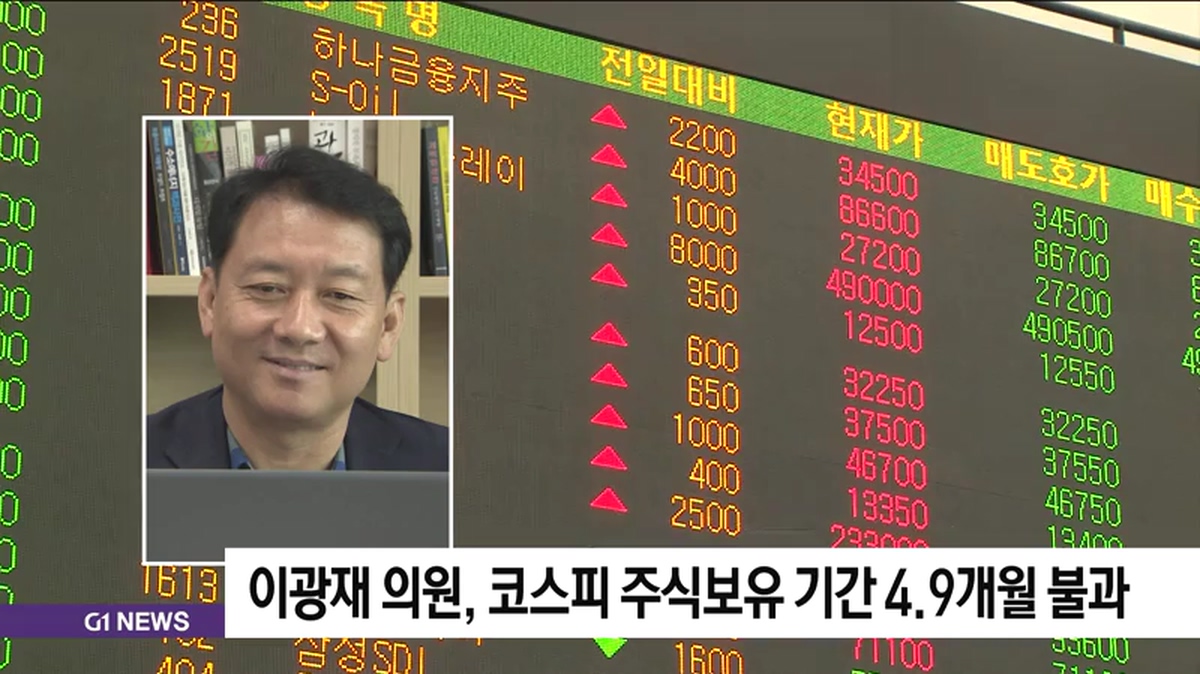 이광재 의원, 코스피 주식보유 기간 4.9개월 불과