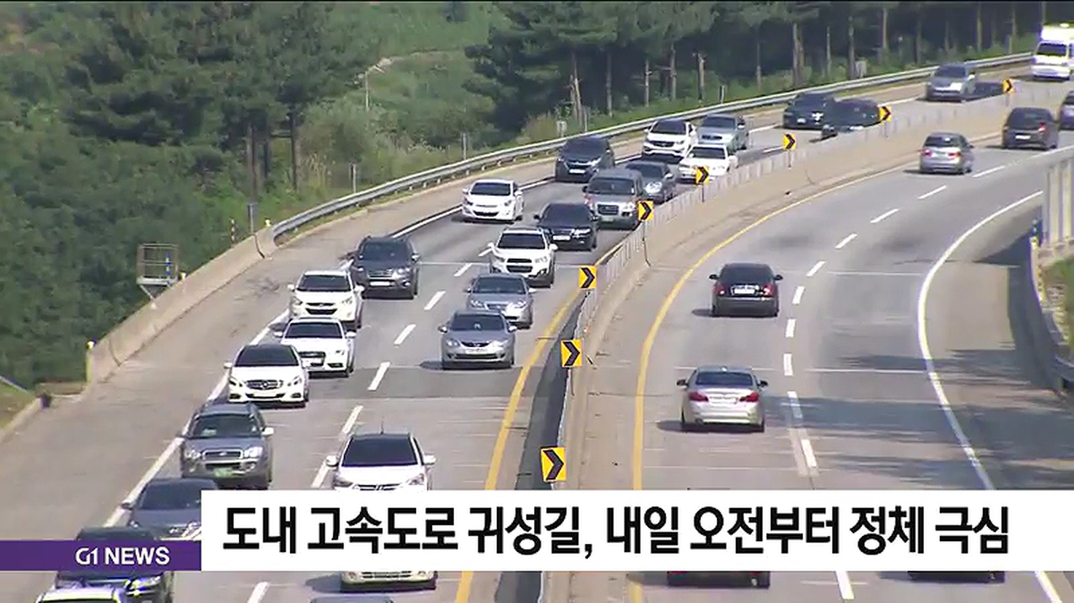 추석을 맞아 본격적인 귀성행렬이 이어지고 있는 가운데, 도내 고속도로는 내일 오전부터 정체가 시작될 전망입니다.