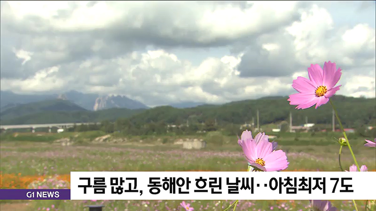 구름 많고, 동해안 흐린 날씨..아침최저 7도