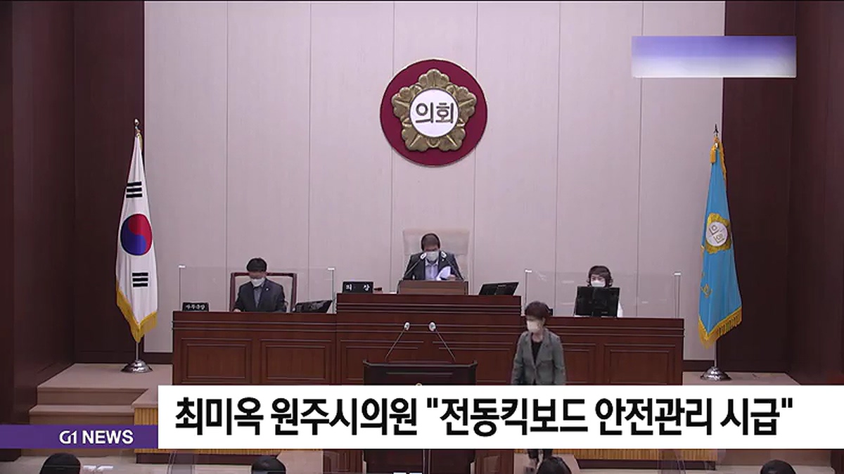 최미옥 원주시의원은 오늘 열린 제221회 임시회 5분 자유발언에서 법률 개정으로 13살부터 퍼스널 모빌리티 이용이 가능해졌다며,