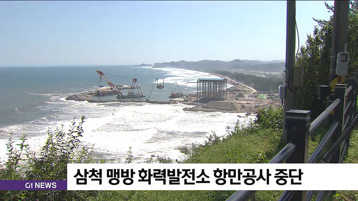 삼척에 지어지고 있는 화력발전소 항만공사가 중단됐습니다.