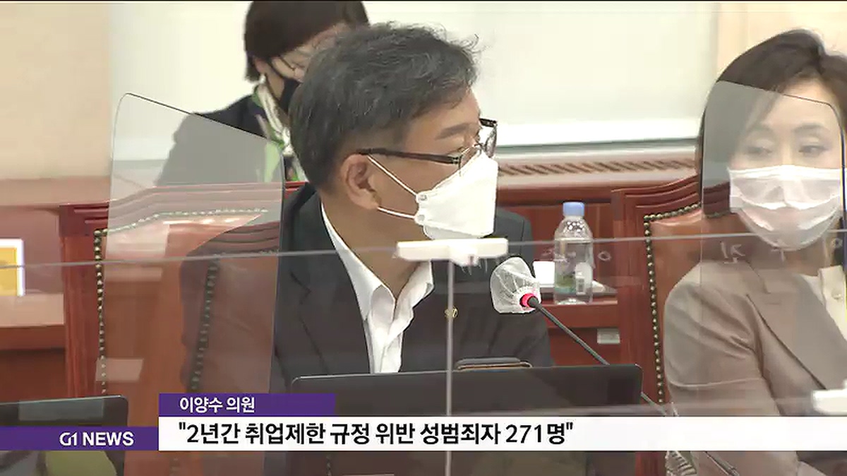 국민의힘 이양수 의원이 여성가족부로부터 제출받은 자료에 따르면, 지난 2018년부터 2019년까지 아동.청소년 관련 기관 등에 일정 기간 취업을 하지 못하도록 하는 '성범죄자 취업 제한 제도'를 위반해 적발된 성범죄자가 271명이었습니다.