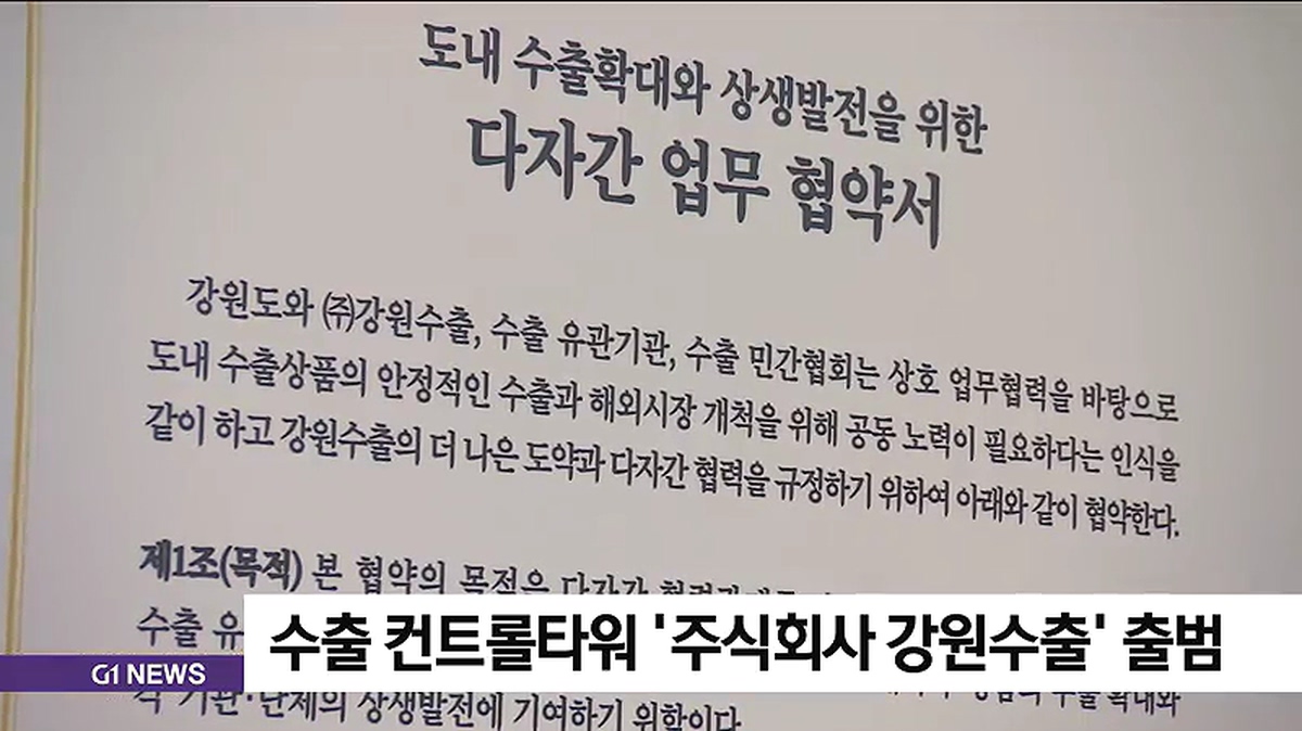 강원도와 주식회사 세중해운 등은 오늘(27일) '주식회사 강원수출'의 출범식을 열고, 비전 선포식과 다자간 업무협약 등을 진행했습니다.