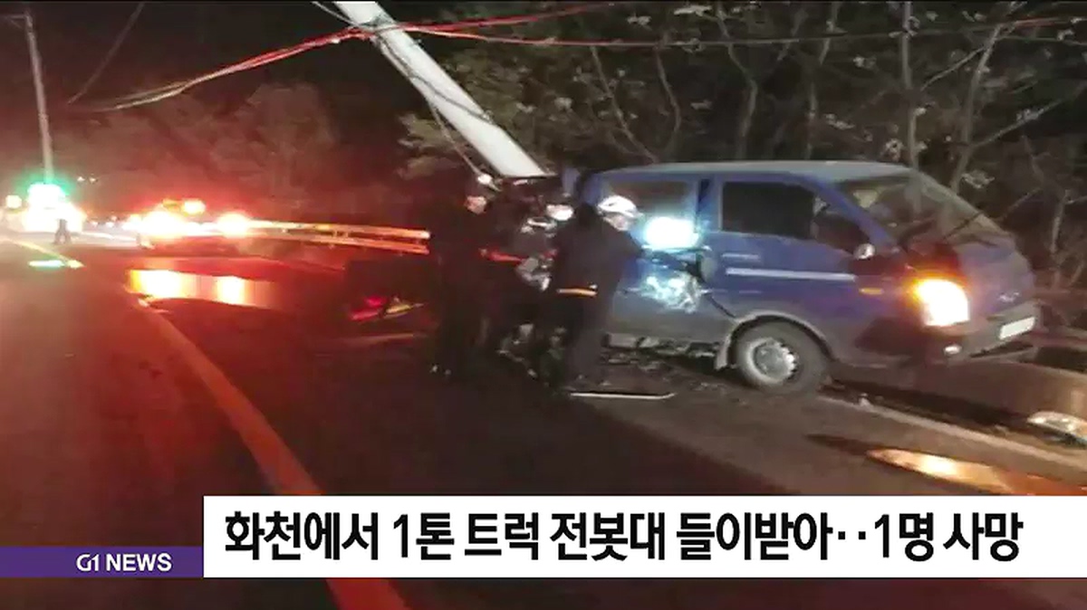 화천에서 1톤 트럭 전봇대 들이받아..1명 사망