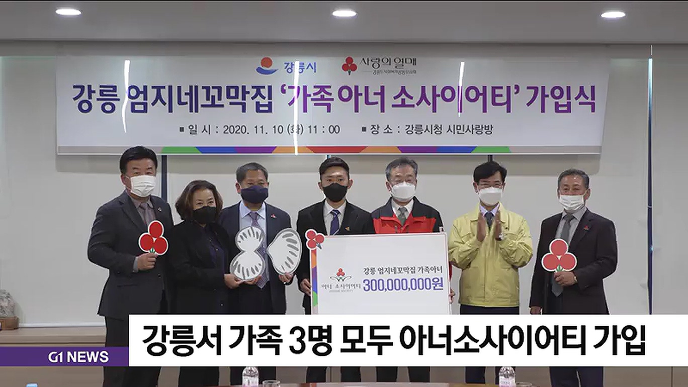 1억 원 이상 고액 기부자 모임인 아너소사이어티에 강릉지역 유명 음식점을 운영하고 있는 가족 세 명이 모두 가입했습니다.