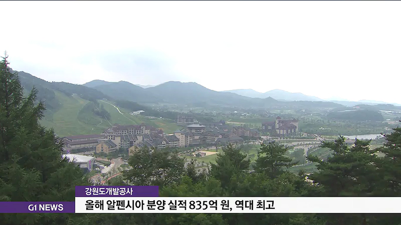 강원도개발공사에 따르면 올들어 현재까지 알펜시아리조트 분양은 회원제골프장 골프회원권 588억 원과 호텔·콘도 247억 원 등 모두 835억 원의 실적을 보였습니다.