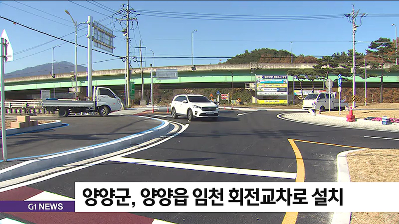 양양군은 2억6천만 원을 들여 국도 44호선에서 시내로 진입하는 임천 사거리에 회전교차로를 설치했다고 밝혔습니다.