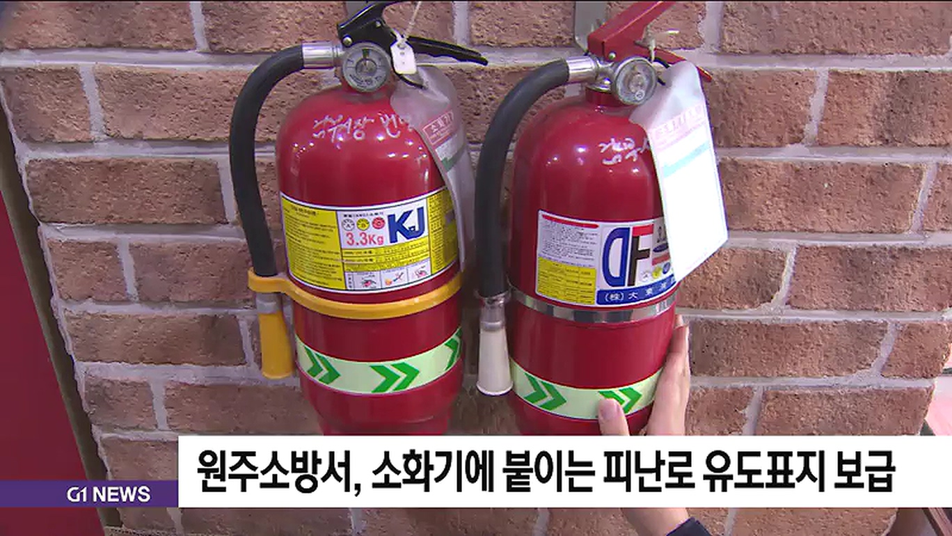 원주소방서, 소화기에 붙이는 피난로 유도표지 보급