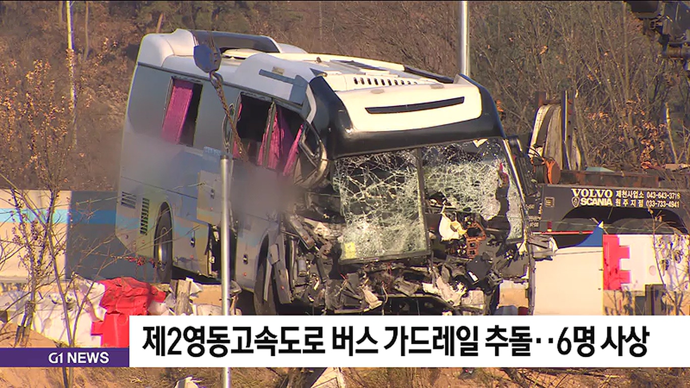 제2영동고속도로 버스 가드레일 추돌..6명 사상