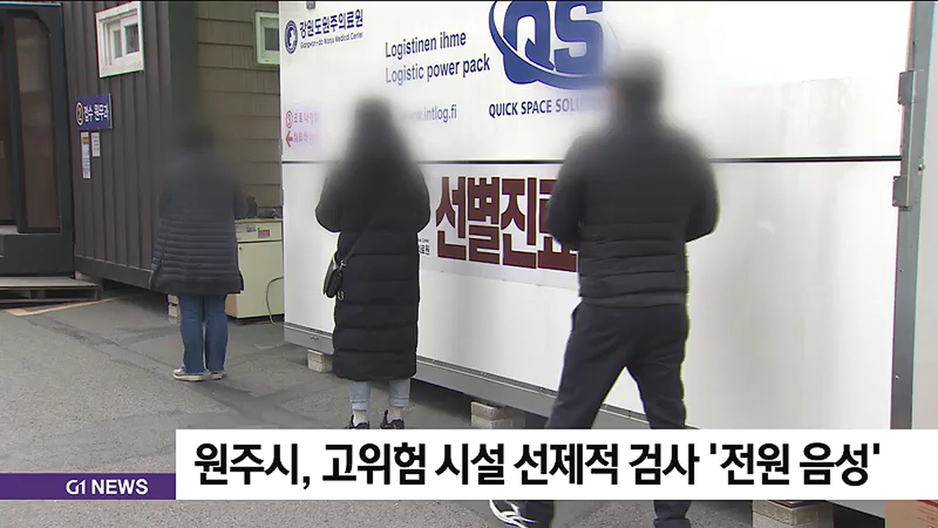 원주시는 지난 11일부터 20일까지 요양병원과 정신병원 등 지역 내 110개 고위험 집단시설 관계자 2천 845명을 대상으로 전수 검사한 결과, 모두 음성 판정을 받았다고 밝혔습니다.