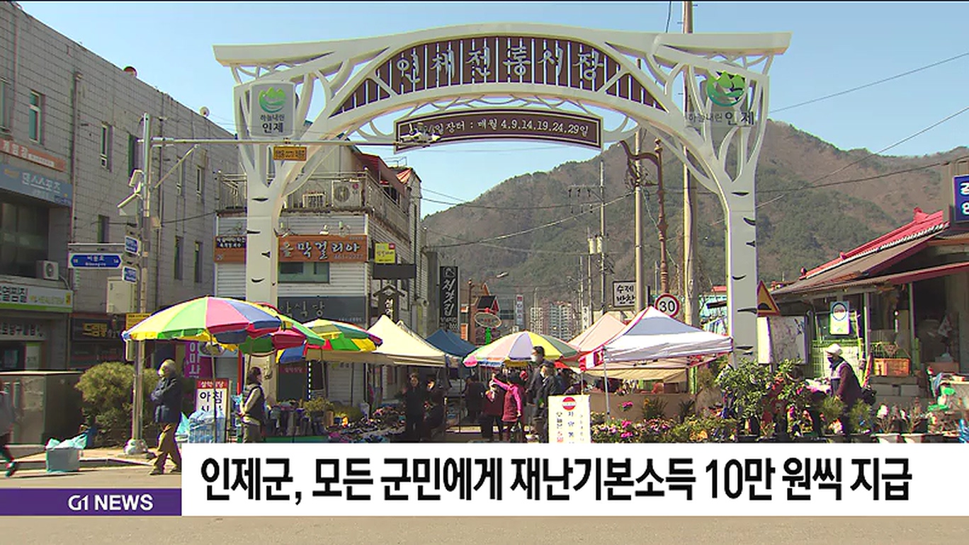 인제군이 코로나19로 침체된 지역경기를 활성화하기 위해 모든 군민에게 재난기본소득을 1인당 10만 원씩 지급하기로 했습니다.