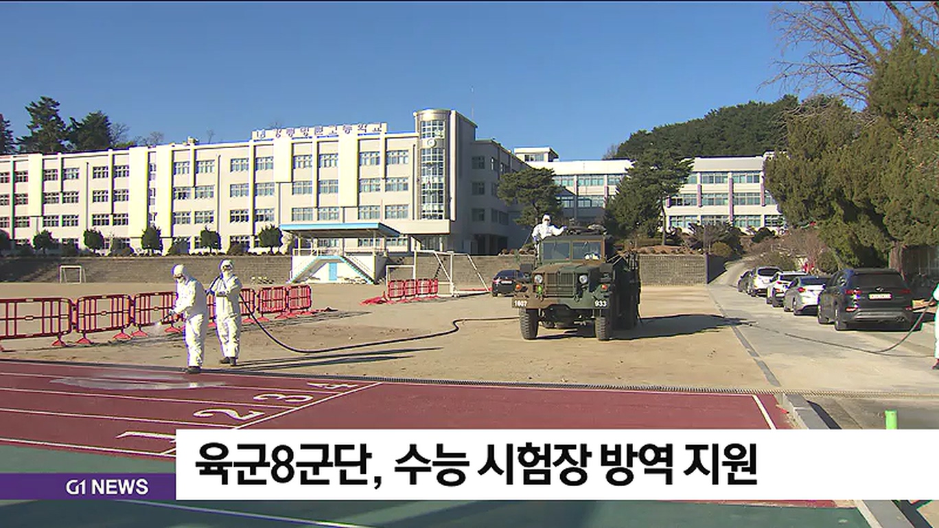 육군 8군단은 다음달 3일 치러지는 대학수학능력시험평가와 관련해 코로나19 확산을 막고, 수험생들이 안심하고 시험을 치를 수 있도록 강릉과 속초 등 5개 학교에 방역을 지원합니다.