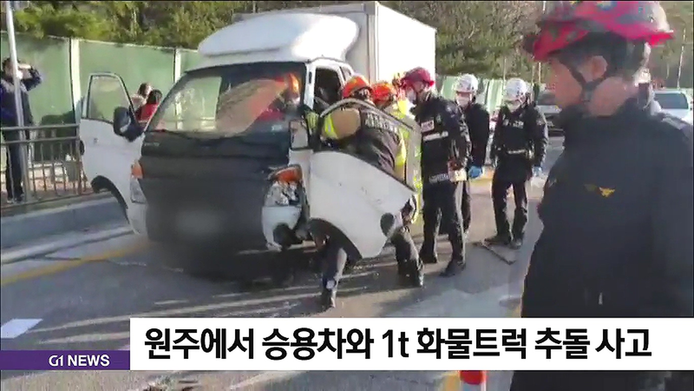 오늘(4일) 오후 3시 26분쯤 원주시 반곡동의 한 도로에서 승용차와 1t 화물트럭이 추돌하는 사고가 발생했습니다.