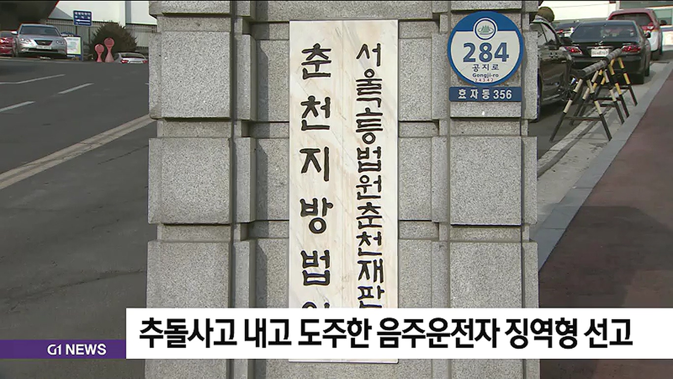춘천지법 형사2단독 박진영 부장판사는 특정범죄가중법상 도주치상과 도로교통법 위반 혐의로 기소된 61살 A씨에게 징역 1년 6개월에 집행유예 3년을 선고했습니다.