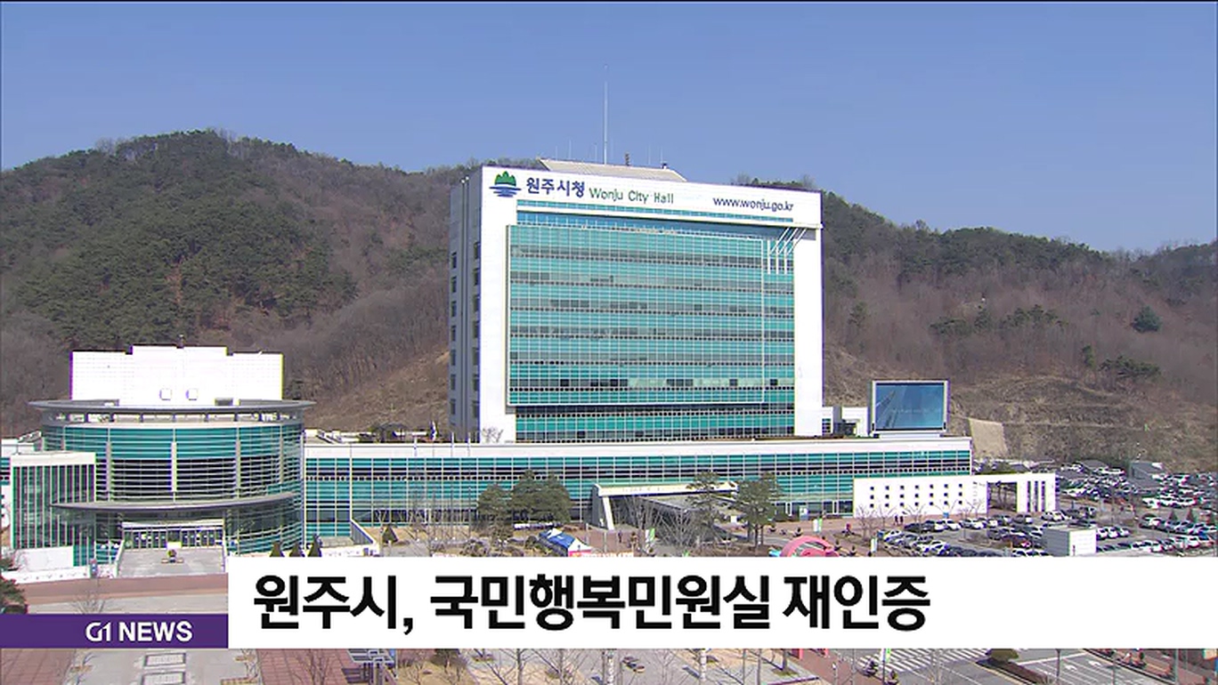 원주시가 행정안전부가 주관하는 국민행복민원실 재인증을 받아, 오는 2023년 12월까지 자격을 유지하게 됐습니다.