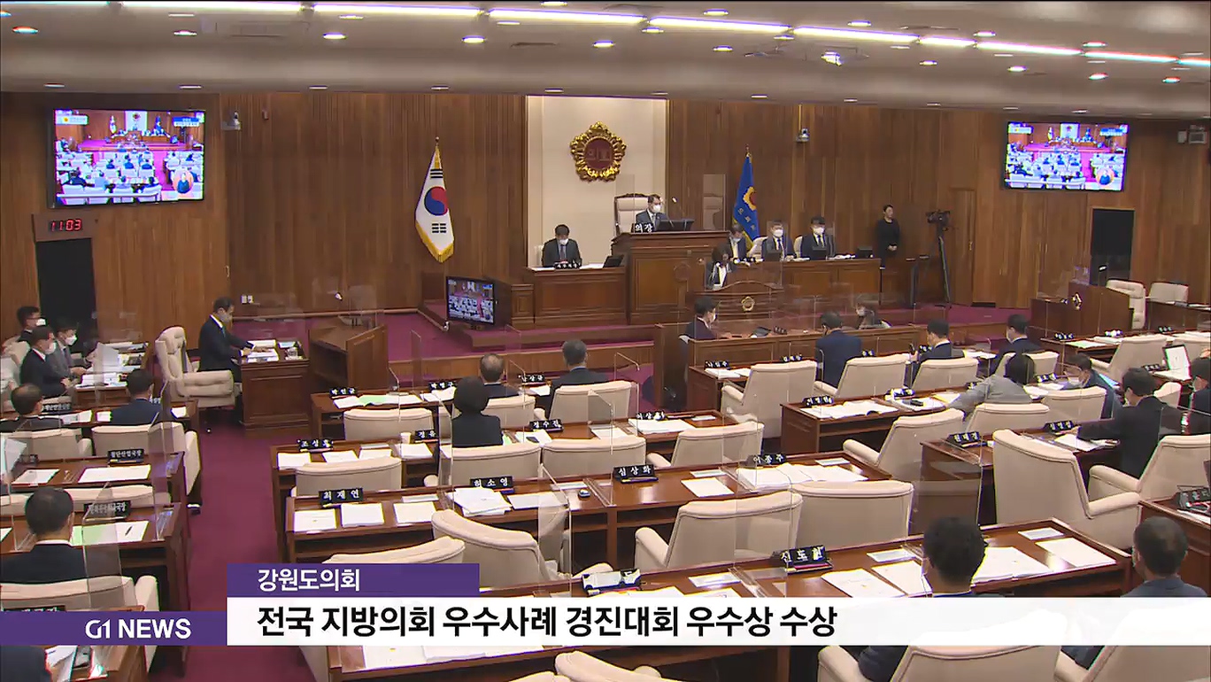 강원도의회가 행정안전부가 주관하는 전국 지방의회 우수사례 경진대회에서 우수상을 수상했습니다.