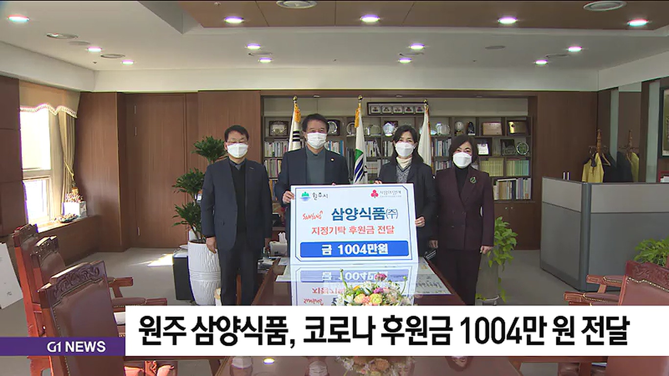 삼양식품 원주공장은 오늘 원주시를 방문해 코로나19로 소외된 이웃을 돕는데 써달라며 후원금 1004만 원을 전달했습니다.