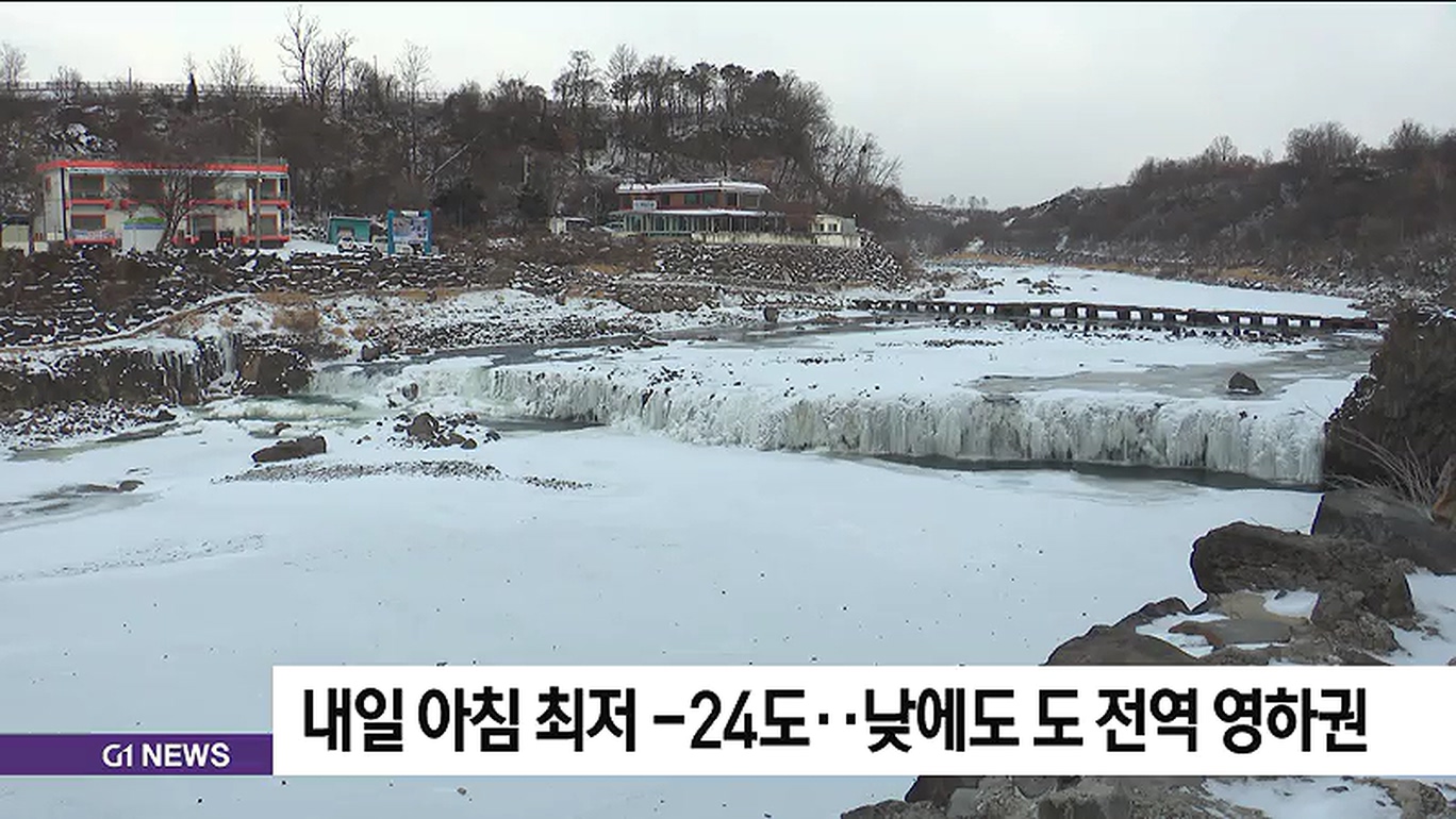 영하 20도를 넘나드는 강추위가 이어진 가운데, 오늘보다 조금 기온이 오르는 내일도 도 전역이 영하권에 머물겠습니다.