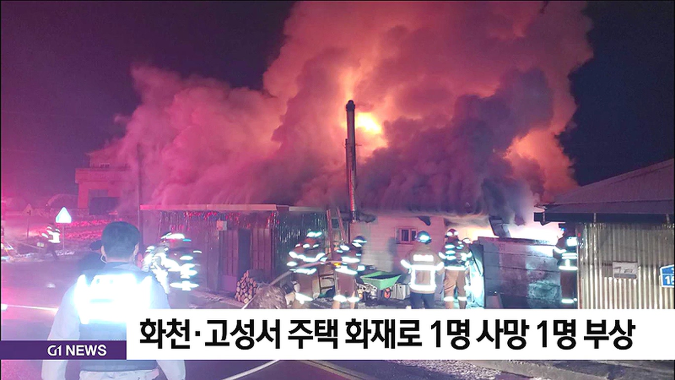 밤사이 화천과 고성에서 주택 화재가 잇따라 발생해 1명이 숨지고 1명이 다쳤습니다.