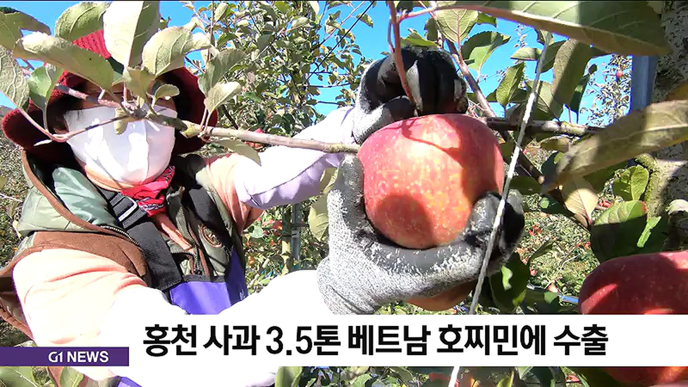 홍천군은 지역에서 재배된 사과 3.5톤을 베트남 호찌민에 수출하는 계약을 체결해, 오는 16일 부산항으로 통해 출하한다고 밝혔습니다.