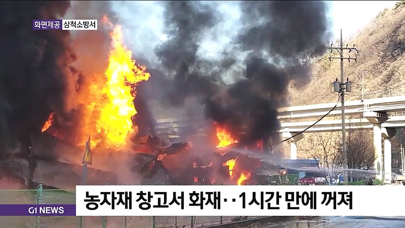 신고를 받고 출동한 소방은 장비 15대와 인력 30여 명을 동원해 1시간 반 만에 불을 껐으며, 인명피해 없이 창고 한동과 농자재가 불에 탔습니다.